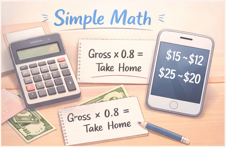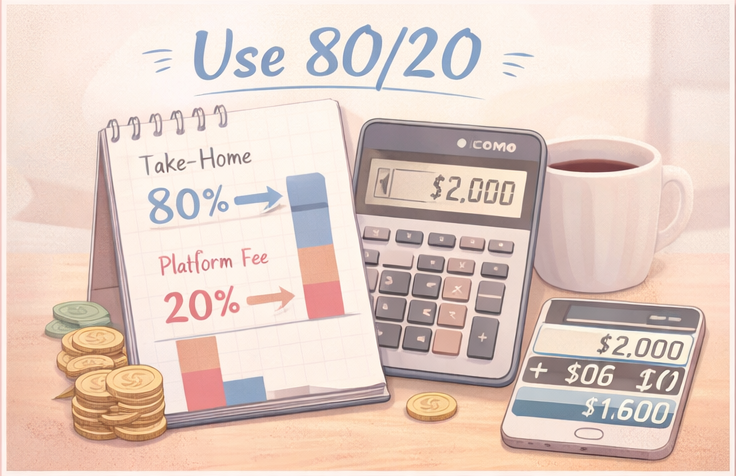 The 80% you keep is your platform-side revenue before your personal taxes, and sometimes before outside costs like bank or currency-related fees. So the cleanest way to think about it is this: platform take-home is not the same as true net income.