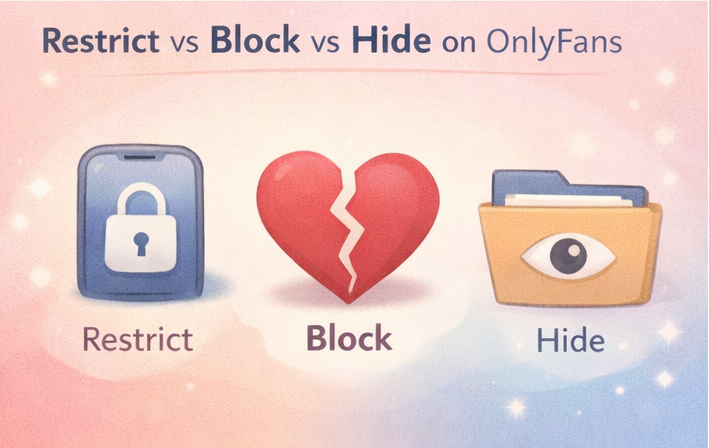 Restrict may let the fan keep seeing your content while stopping interaction. Block is a full cutoff from profile, content, and contact.
