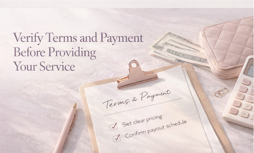 Verify terms and payment before providing your service