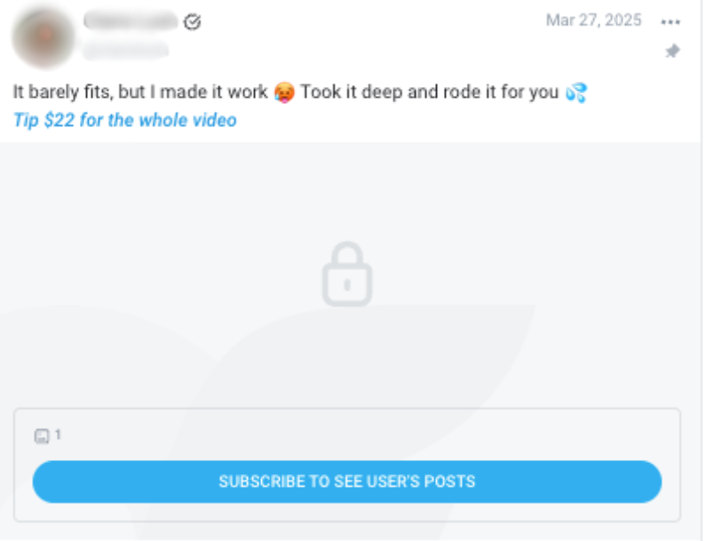 Here is one example of a mid-tier offer in practice. The creator teases the content and uses a clear call to action ("Tip $22 for the whole video"). This works well alongside a tip menu because the price matches the mid-tier range and creates a natural transition from browsing to buying.